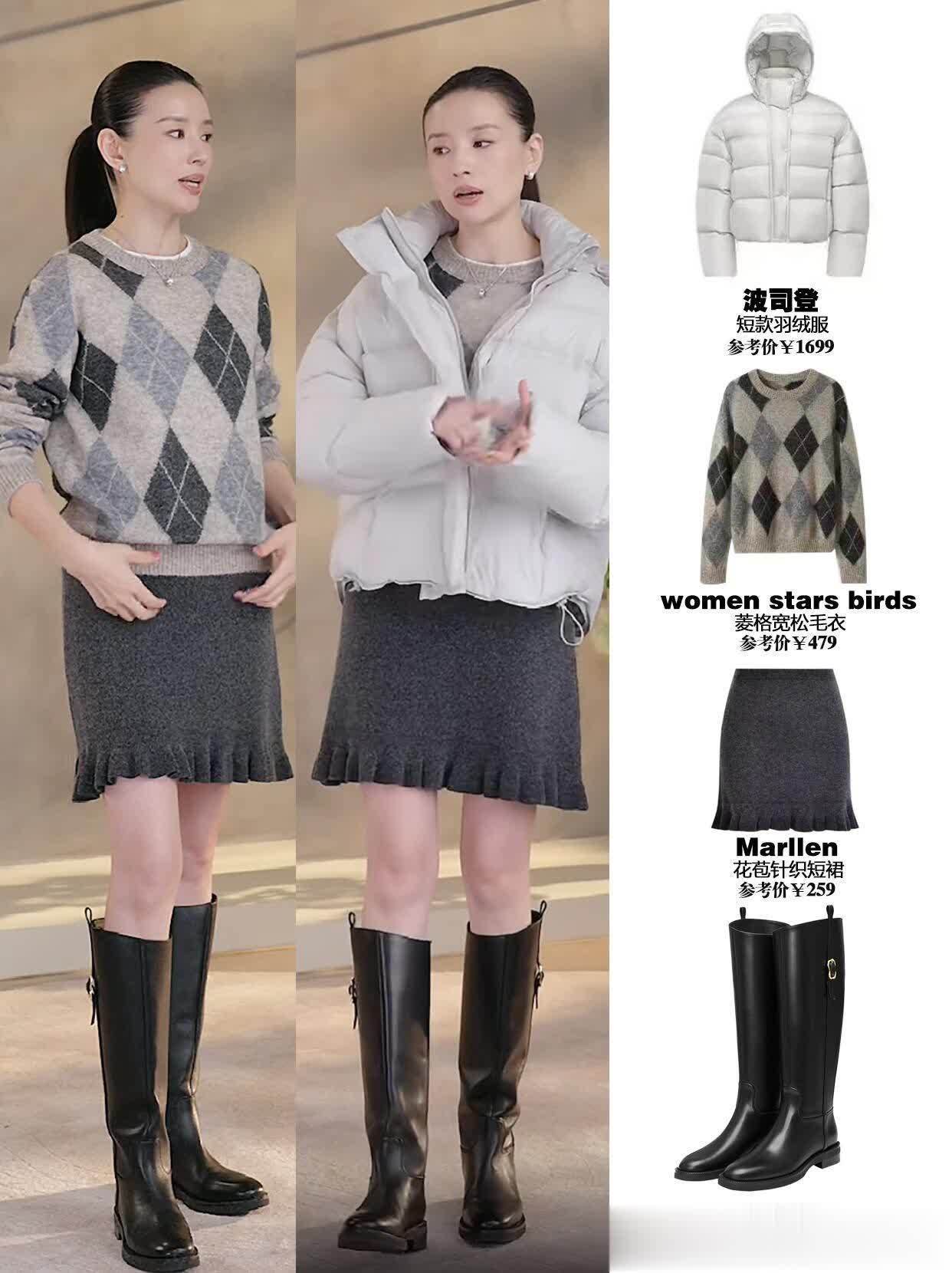 最让人觉得贴心的是她选的“老物件”,除了那只耳罩,还有条深棕围巾,她说“去年冬天就搭过大衣,今年配皮草照样好看”,这种一件配饰穿几年的思路,真的太适合普通人了。直播里她教大家叠穿小技巧:马甲别系太紧,留两指空隙显随性;穿长靴时袜子颜色比靴筒深一点,视觉上更显腿长;耳罩和围巾选同色系,看着就像精心搭过。
